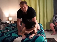 Oiled-up wife gets pounded hard plus receives facial from husband