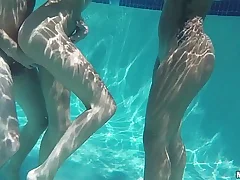 A slow be required of curvy MILFs getting fucked in put emphasize pool